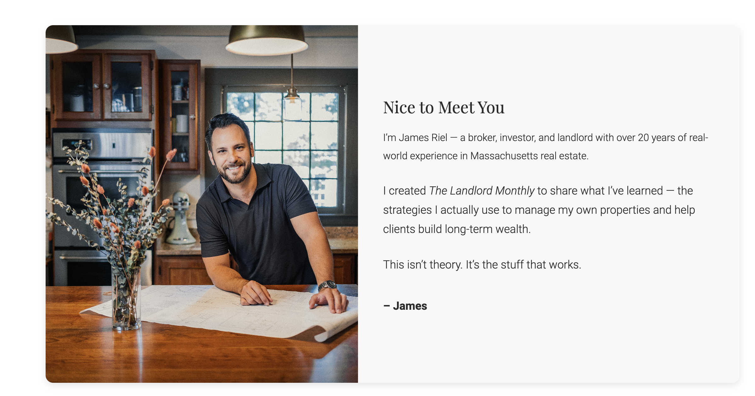 The Landlord Monthly is a free monthly publication created to help Massachusetts landlords improve operational efficiency, reduce risk, and increase their return on investment. Each issue delivers actionable insights on rent strategy, tax optimization, property maintenance, legal changes, and long-term planning — all tailored to the real-world challenges of owning and managing rental property in Massachusetts.